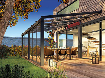 Moderne Infrarot-Technik sorgt für angenehme Temperaturen im Terrassenbereich auch bei schlechtem Wetter.